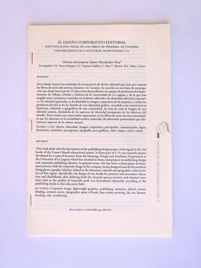 Además de estas cuatro publicaciones, Jaime Hernández Vera, ha considerado regalarle a di-Ca interesante documento de casi 50 páginas sobre el desarrollo de su proyecto de diseño editorial para los libros de Primaria, Secundaria y Bachillerato de la Editorial Afortunadas S.A. (El diseño corporativo editorial. Identificación visual de los libros de Primaria, Secundaria y Bachillerato de la Editorial Afortunadas, S.A.).