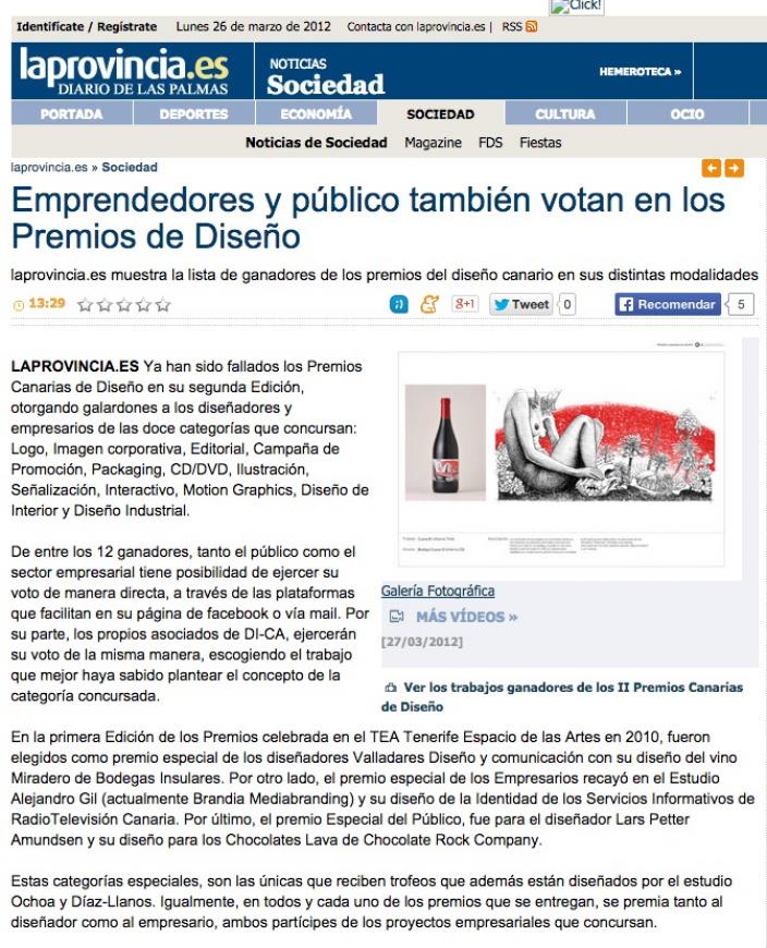 La Provincia Diario de Las Palmas se hace eco de la entrega de los II Premios Canarias de Diseño