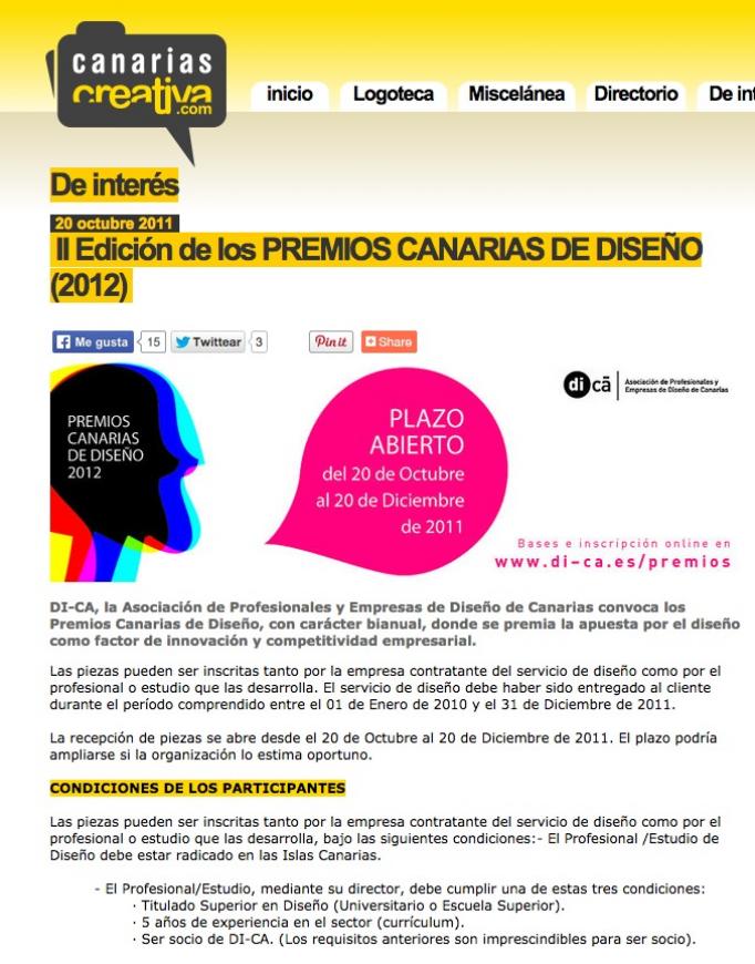 CanariasCreativa.com se hace eco de la convocatoria de los II Premios Canarias de Diseño