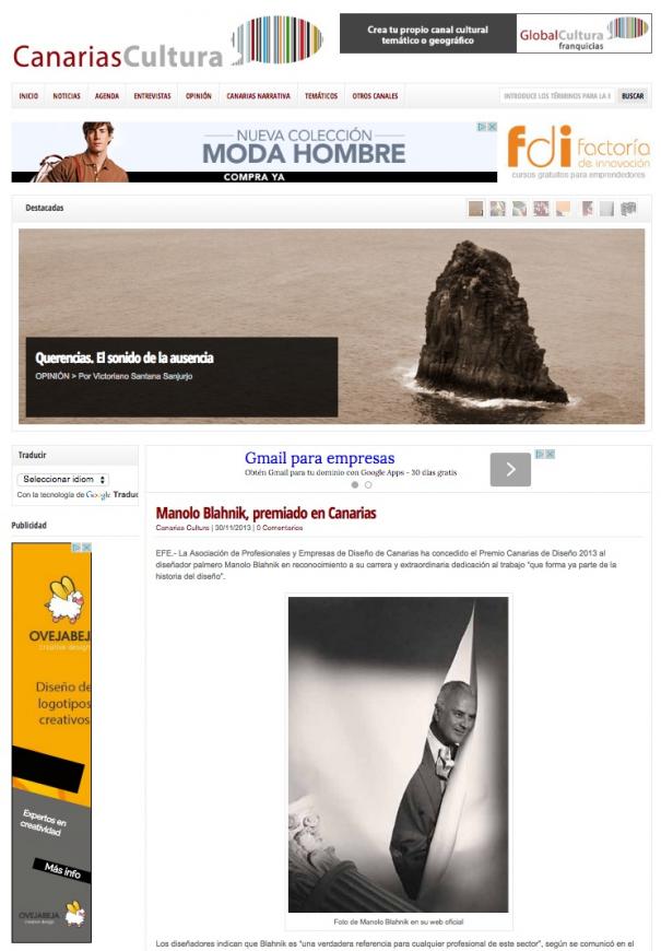 Canariascultura.com // Manolo Blahnik, premiado en Canarias
