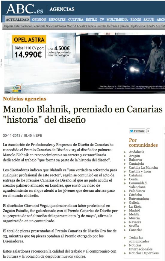 ABC // Manolo Blahnik, premiado en Canarias como "historia" del diseño