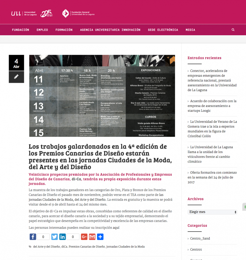 Los trabajos galardonados en la 4ª edición de los Premios Canarias de Diseño estarán presentes en las jornadas Ciudades de la Moda, del Arte y del Diseño